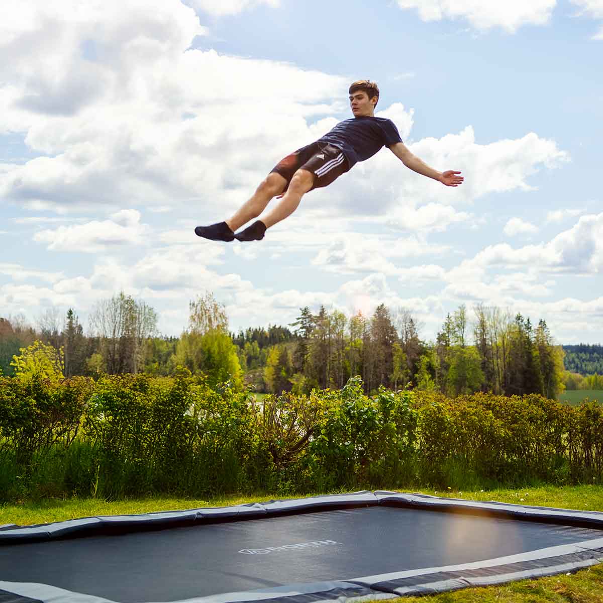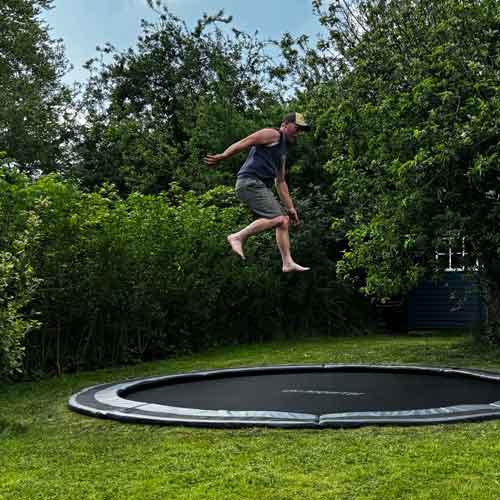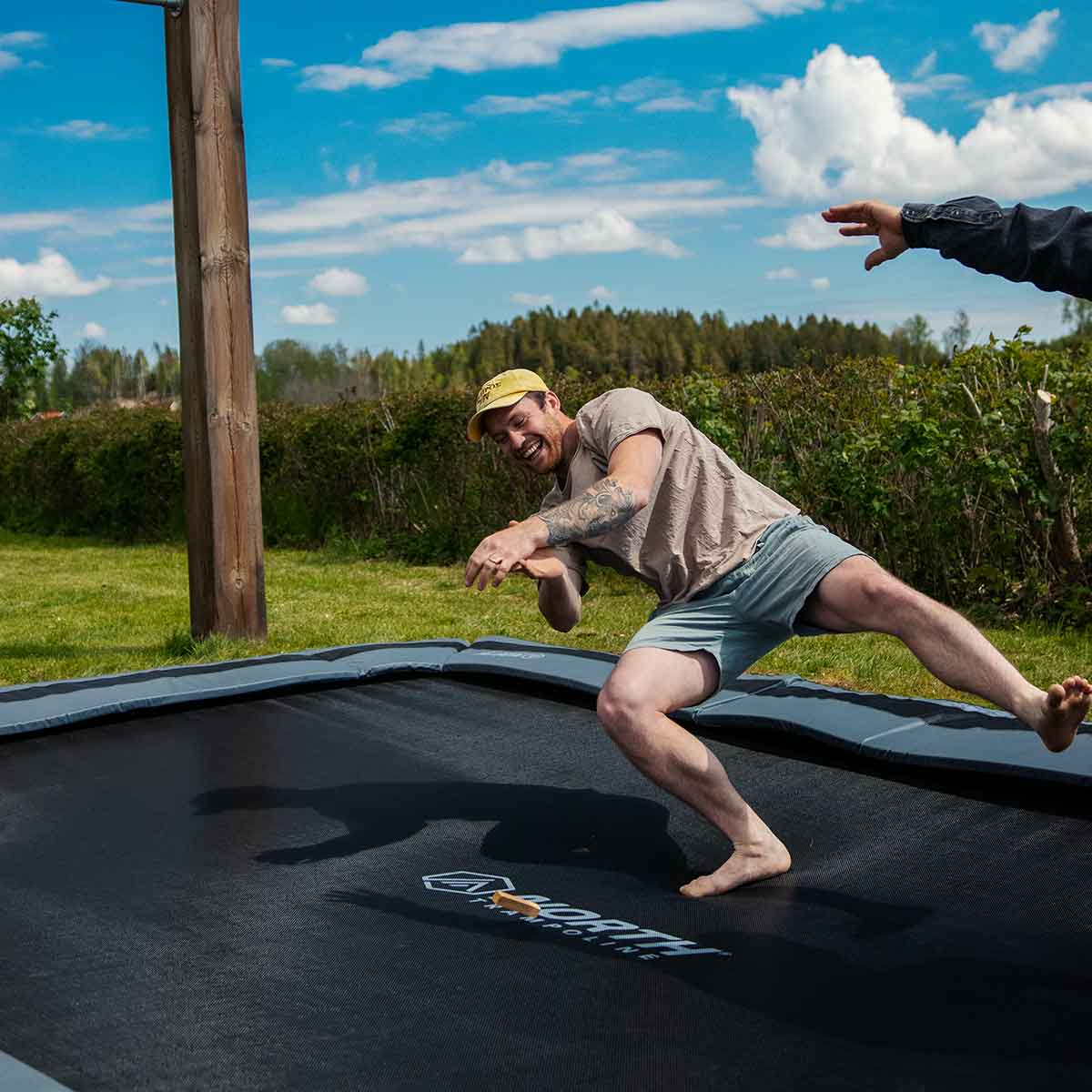 Muut merkit asentavat maanpäälliseen käyttöön tarkoitettavat trampoliinit maahan ajattelematta lainkaan, miten sen osat kestävät tai toimivat näissä olosuhteissa. Tämä trampoliini on kehitetty erityisesti vain maahan integroituun käyttöön.
