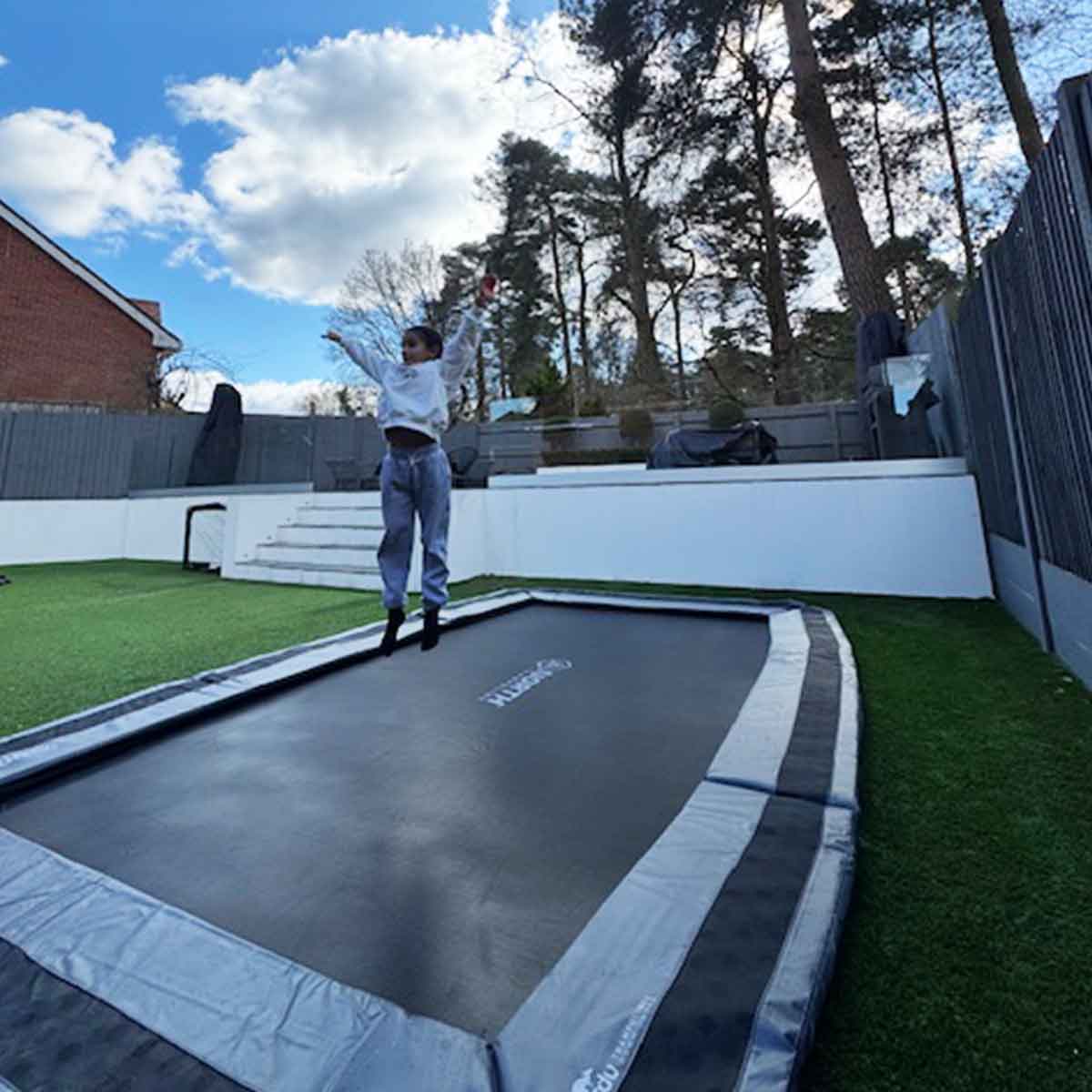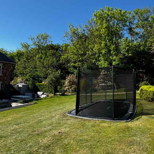 - Riippumatta siitä, asennatko sen itse, käytätkö paikallista pihasuunnittelijaa vai asennustiimiämme, älykäs matala 18 cm:n kaksoiskehys tarkoittaa vähemmän kaivamistarvetta muihin maahan asennettaviin trampoliineihin verrattuna.