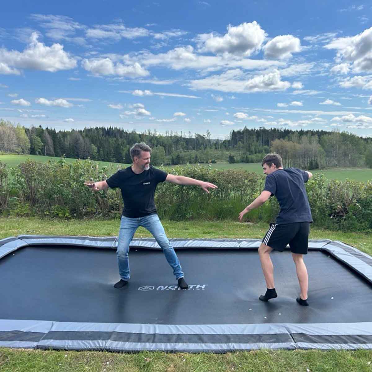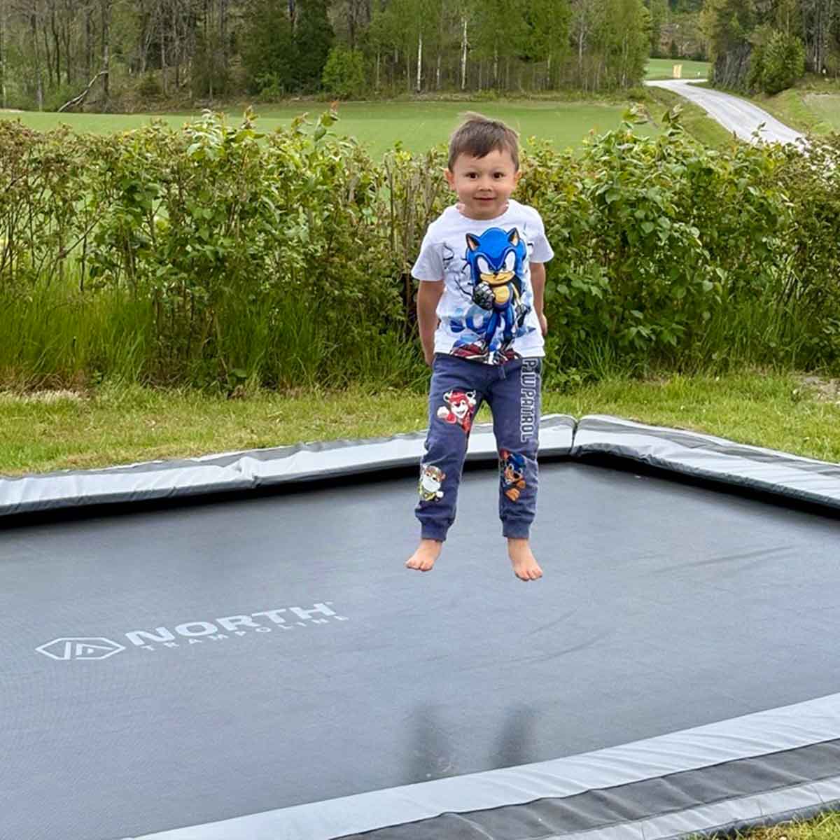 Sadetta, tuulta, lunta ja aurinkoa. North-trampoliini on suunniteltu kestämään kaikkea, mitä maapallomme sille heittää. Vastineeksi me pidämme huolta planeetastamme luomalla trampoliinin, joka kestää perheesi koko lapsuuden ajan, käyttäen huolellisesti valittuja, pitkäikäisiä ja vastuullisia materiaaleja. Vähemmän kaatopaikkoja, onnellisempi maapallo.